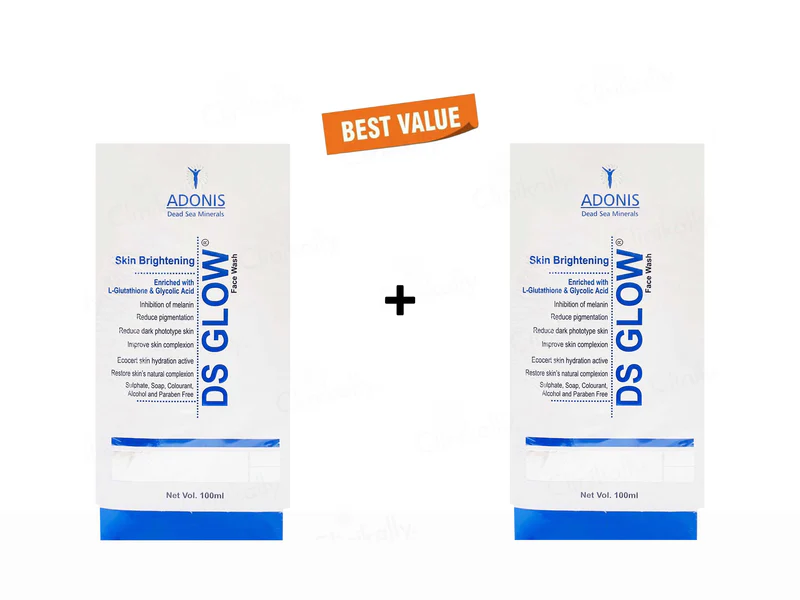 Adonis DS Glow Face Wash is a skin brightening cleanser enriched with L-Glutathione and Glycolic Acid to help reduce pigmentation, dark spots, and uneven skin tone. Its advanced formula works to inhibit melanin production, improve complexion, and restore the skin’s natural radiance. Infused with Ecocert hydration actives, it keeps your skin soft, fresh, and hydrated all day. Free from sulfates, parabens, alcohol, soap, and colorants, this gentle face wash is ideal for daily use, giving you a brighter, glowing, and healthier-looking skin.