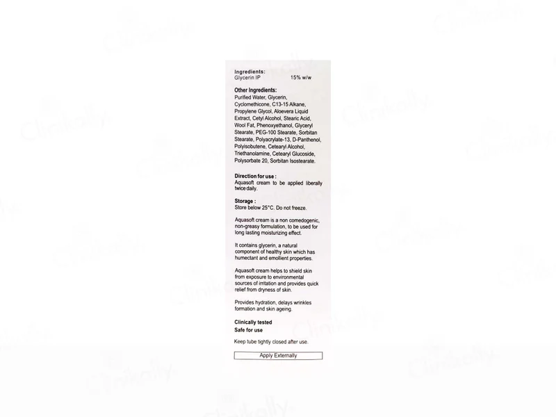 - Apply Aquasoft Moisturizing Cream to the required areas once or twice daily.