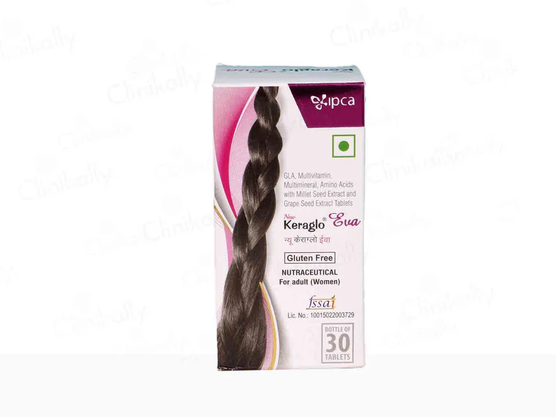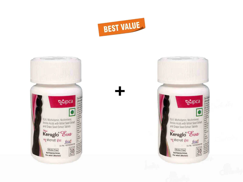 IPCA Keraglo Eva Tablet is a specialized hair health supplement designed for women experiencing hair loss and thinning. Formulated with a blend of powerful ingredients like Gamma-Linolenic Acid (GLA) and N-acetyl-l-Cysteine, this tablet strengthens hair follicles, promotes hair growth, and improves hair texture. By increasing blood flow to the scalp and reducing inflammation, Keraglo Eva Tablet supports fuller, healthier hair, making it an effective solution for various hair concerns.